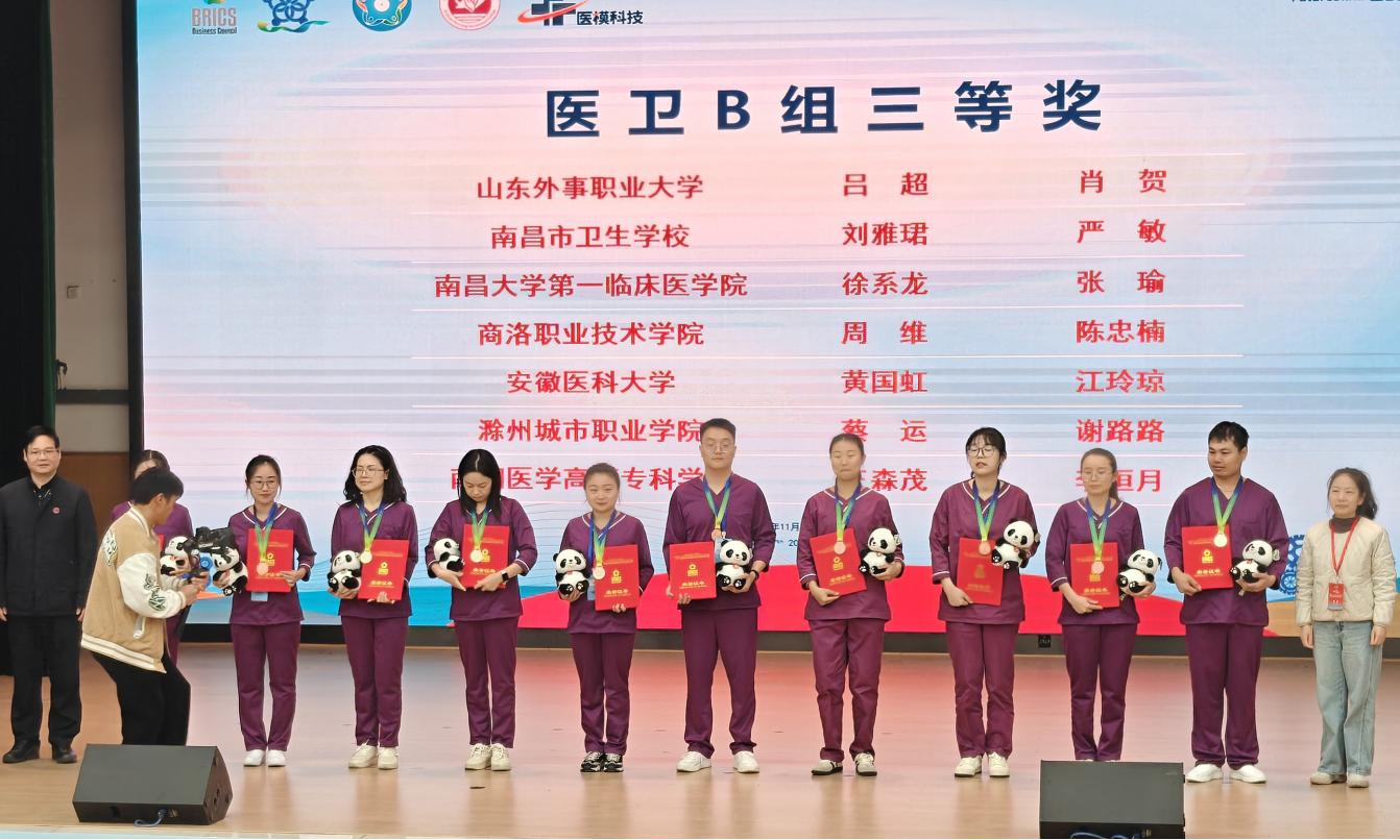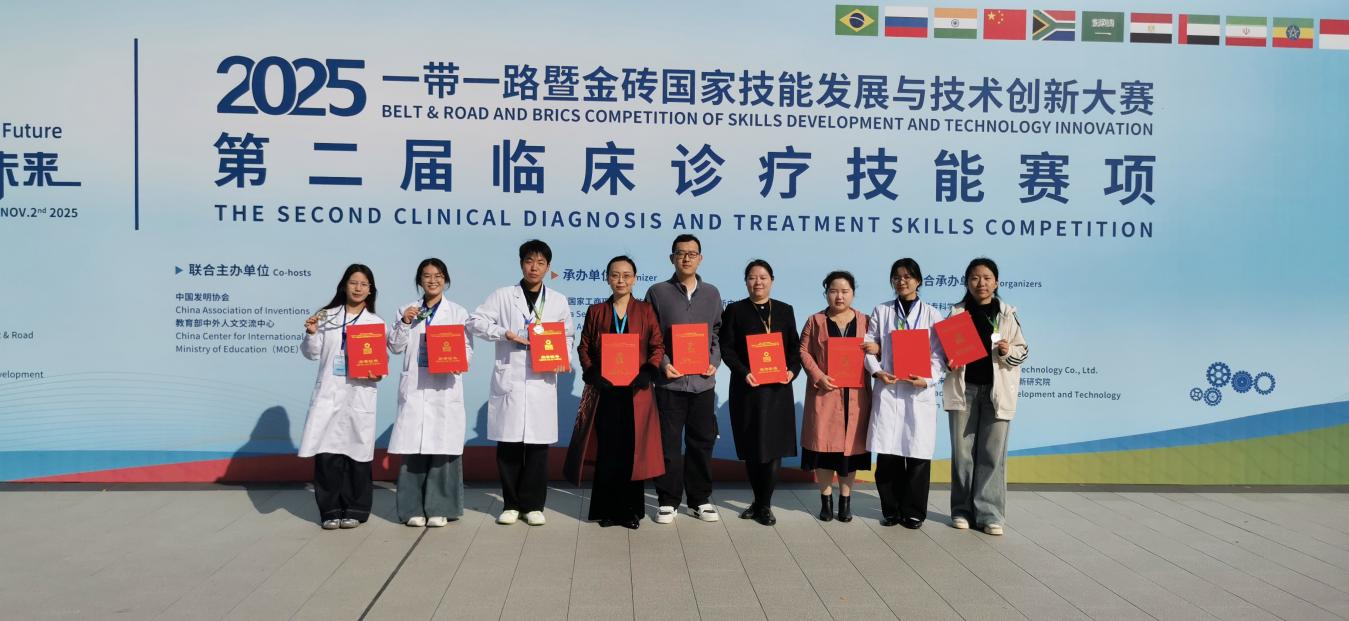 (文 吴鑫)在刚刚落幕的2025一带一路暨金砖国家技能发展与技术创新大赛之第二届临床诊疗技能赛项(学生组)和学校急救教育赛项(教师组)中,我系参赛师生沉着冷静、灵活应变,从众多强手中脱颖而出,最终分别斩获二等奖、三等奖并获得优秀指导老师奖2项、优秀组织奖1项。