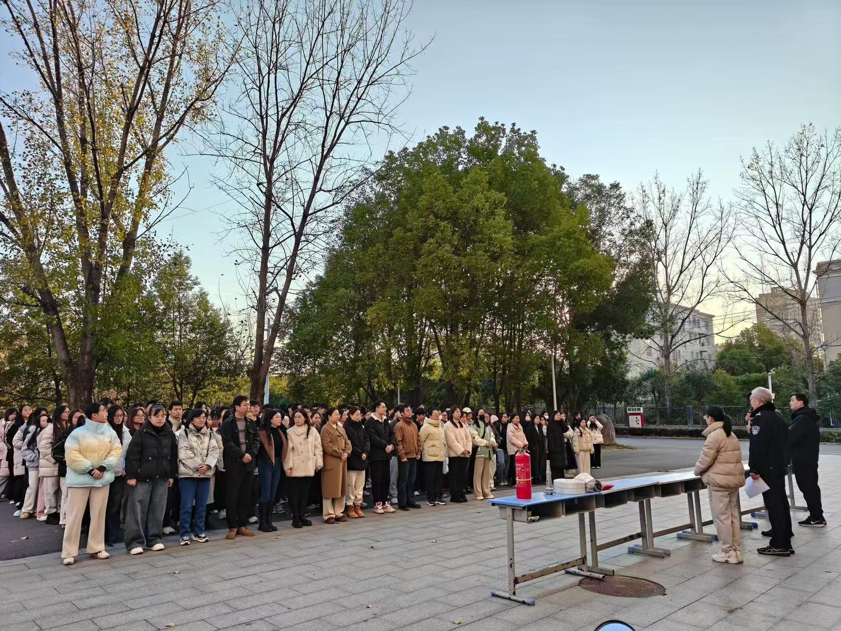 随后,保卫处消防科科长杨志旺开展消防知识宣讲。他结合校园实验室、教学楼、宿舍等重点区域火灾隐患特点,通过典型案例剖析,系统讲解火灾预防、初期处置及火场逃生自救技巧,普及贴合校园场景的消防安全知识。